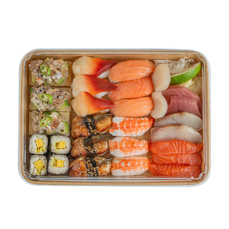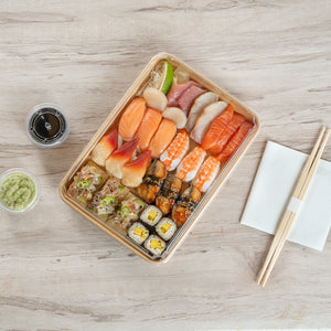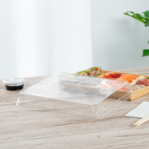 Enhance the presentation and appeal of your sushi offerings with our Matsuri Vision Clear PET Plastic Lids. These plastic lids can be paired with matching containers (SKU: RWA1453K-50) for a tight seal and to prevent accidental openings or spills while on the go. Featuring an anti-fog design, these clear plastic lids avoid condensation buildup, ensuring customers can easily see the contents inside without obstruction. These dome lids provide spacious accommodation for elaborate sushi presentations, preserving their visual appeal and preventing them from being compressed or squashed. With a clear finish, these lids for food containers beautifully exhibit the colors and textures of sushi. These container lids are created from premium plastic for robust durability and sturdiness. Ideal for an efficient post-meal cleaning experience, these disposable lids can be discarded after use. These clear lids are recyclable and offer an eco-friendly alternative to traditional plastic lids. Each to go sushi container lid measures 10.25 inches in length by 7.25 inches in width by 1.25 inches in height. Sold in a 50 count box. Containers are available and sold separately.