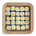 Protect your sushi orders with our Matsuri Vision Clear PET Plastic Lids. Pair these plastic lids with their compatible containers (SKUs: RWA1465K-50 and RWA1466K-50) to form a secure seal, preventing accidental openings or spills during transportation. These lids for food containers have an anti-fog design and avoid condensation buildup, ensuring customers can see the contents inside without obstruction. Featuring a crystal-clear finish, these container lids beautifully showcase the vibrant colors and textures of your exquisite sushi. Crafted from premium PET plastic, these clear lids are durable and sturdy, keeping your culinary creations securely packed. These disposable lids can be discarded after use and help shorten your cleaning process. Suitable for ecologically-conscious foodservice establishments, these to go sushi container lids are recyclable and help minimize your carbon footprint. Each clear plastic lid measures 7.25 inches in length by 7.25 inches in width by 0.75 inches in height. Sold in a 50 count box. Containers are available and sold separately.