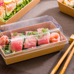 Designed with a transparent finish, these sushi tray lids offer you a full view of packaged foods. Avoid mixing up restaurant orders or your children's school lunches.