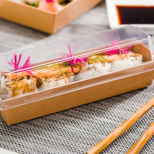 Designed with a transparent finish, these sushi tray lids offer you a full view of packaged foods. Avoid mixing up restaurant orders or your children's school lunches.