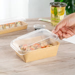 Present your sushi creations with our Matsuri Vision Clear PP Plastic Lids. These plastic lids can be paired with our collection of compatible Matsuri Vision sushi containers and form a tight seal to keep your food intact during transportation. With an anti-fog design, these container lids avoid condensation buildup and ensure your customers can see what is packed inside. These lids for food containers feature a crystal-clear finish for an elegant touch and beautifully showcase your sushi arrangement. Crafted from premium plastic, these clear lids boast robust durability and sturdiness, ensuring your culinary creations are securely packed. These clear plastic lids are disposable and allow you to discard them after use for a straightforward cleanup. To minimize your carbon footprint, these disposable lids are recyclable and suitable for environmentally-conscious foodservice establishments. Each to go sushi container lid measures 6.75 inches in length by 4.75 inches in width by 0.75 inches in height. Sold in a 100 count box. Containers are available and sold separately.