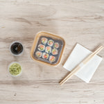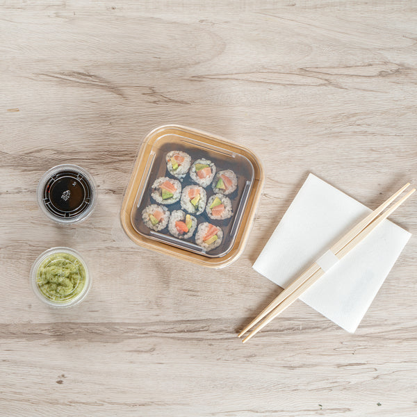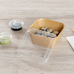 Display your sushi creations with our Matsuri Vision Clear PP Plastic Lids. These plastic lids can be paired with compatible containers (SKUs: RWA1461K-50 and RWA1462K-50) and form a secure seal, minimizing accidental openings or spills during transportation. The anti-fog design of these lids for food containers prevents condensation buildup, ensuring that customers can easily see the delicious contents inside. With a crystal clear finish, these container lids expertly showcase your exquisite sushi's vibrant colors and textures. Crafted from premium plastic, these clear lids are durable and sturdy, keeping your culinary creations securely packed. These disposable lids can be discarded after use, making the cleaning process quick and easy. Suitable for environmentally-friendly foodservice establishments, these to go sushi container lids are recyclable and help minimize your carbon footprint. Each clear plastic lid measures 5.25 inches in length by 5.25 inches in width by 0.75 inches in height. Sold in a 50 count box. Containers are available and sold separately.
