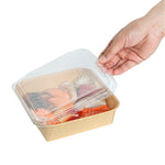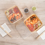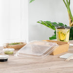 Highlight your sushi creations with our Matsuri Vision Clear PP Plastic Lids. These plastic lids can be paired with matching containers (SKUs: RWA1465K and RWA1466K) and form a secure seal, preventing accidental openings or spills during transit. With an anti-fog design, these lids for food containers prevent condensation buildup, ensuring that customers can easily see the delicious contents inside without obstruction. Featuring a crystal clear finish, these container lids beautifully showcase the vibrant colors and textures of your exquisite sushi. Crafted from premium plastic, these clear lids are durable and sturdy, keeping your culinary creations securely packed. These disposable lids can be discarded after use, simplifying your cleaning process. Perfect for eco-conscious foodservice establishments, these to go sushi container lids are recyclable and help minimize your carbon footprint. Each clear plastic lid measures 7.25 inches in length by 7.25 inches in width by 0.75 inches in height. Sold in a 100 count box. Containers are available and sold separately.