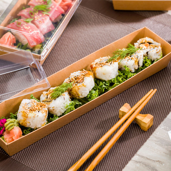 Sturdy paper construction holds the weight of multiple sushi rolls or other meals without bending or breaking. Keep meals securely contained!