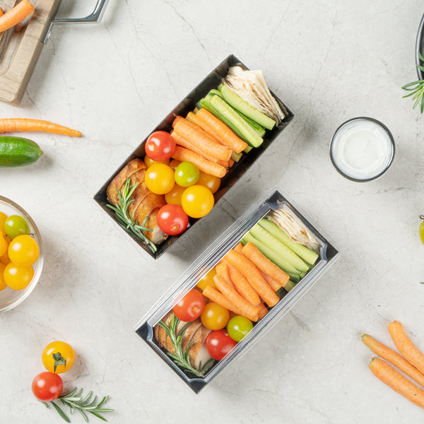 To take meals with you, our containers can be covered with our matching lids to securely seal your food. By combining containers with our crystal clear lids, guests will be able to take a peek inside each container.
