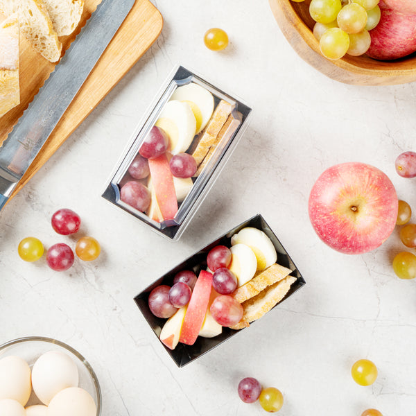 To take meals with you, our containers can be covered with our matching lids to securely seal your food. By combining containers with our crystal clear lids, guests will be able to take a peek inside each container.