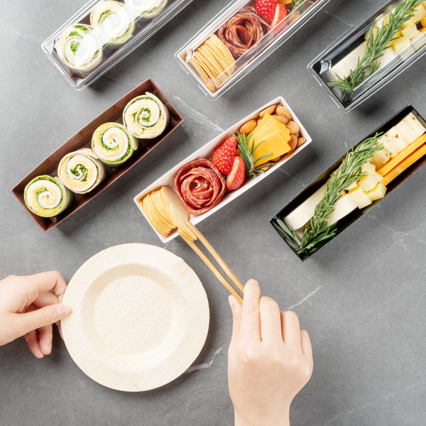 Choose from our kraft, black, white, or wood grain take out containers to complement the colors of food and match the theme of your event. Find the color that suits your needs!