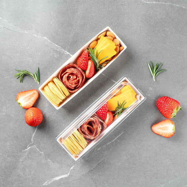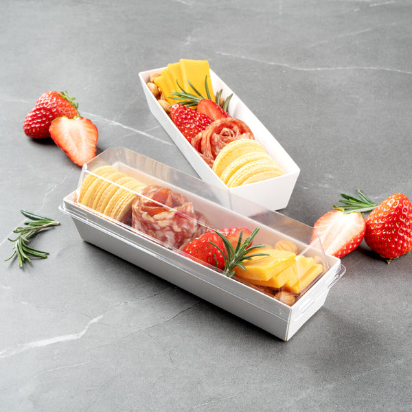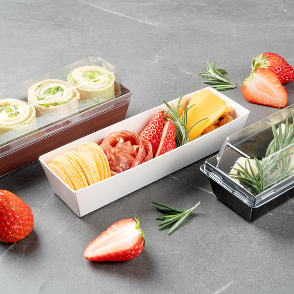 To take meals with you, our containers can be covered with our matching lids to securely seal your food. By combining containers with our crystal clear lids, guests will be able to take a peek inside each container.