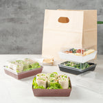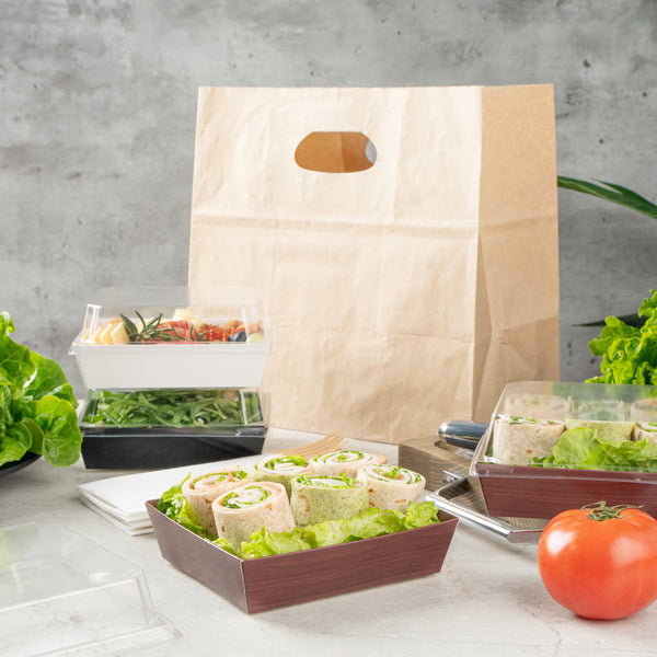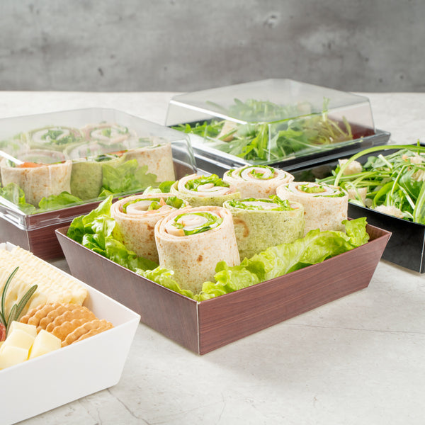 Choose from our kraft, black, white, or wood grain take out containers to complement the colors of food and match the theme of your event. Find the color that suits your needs!