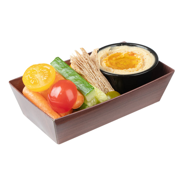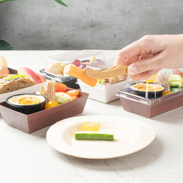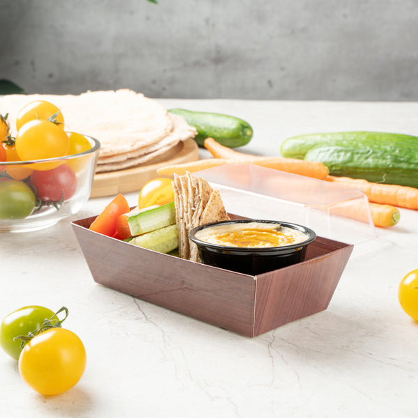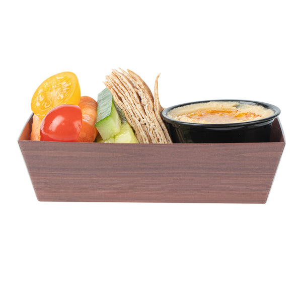 - Wood grain finish effortlessly enhances your prepackaged meal presentations
