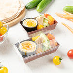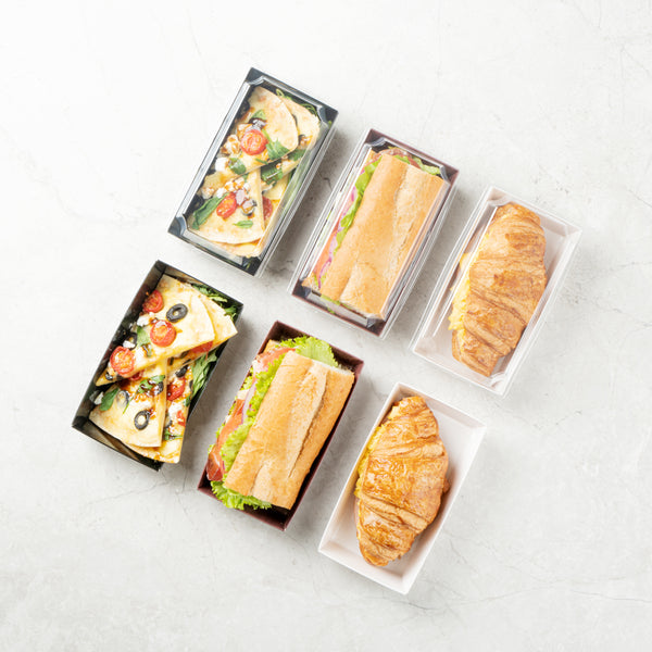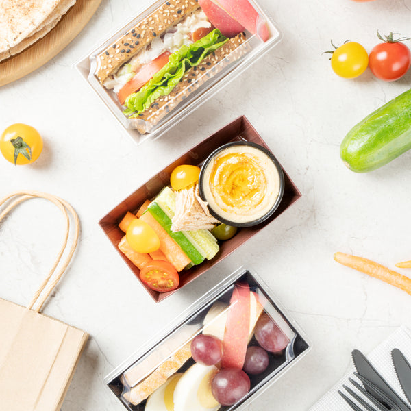 To take meals with you, our containers can be covered with our matching lids to securely seal your food. By combining containers with our crystal clear lids, guests will be able to take a peek inside each container.