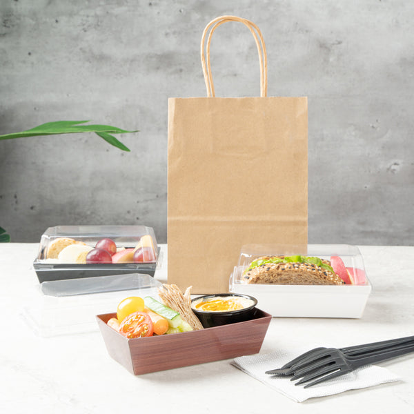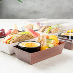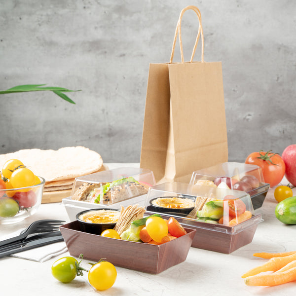 Choose from our kraft, black, white, or wood grain take out containers to complement the colors of food and match the theme of your event. Find the color that suits your needs!
