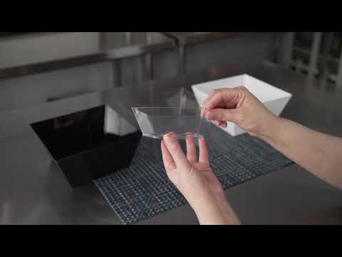 Serve salads with our Maxi Serve 10-ounce Square Black Plastic Small Modern Bowls. These square bowls are crafted from high-quality plastic for long-lasting durability and are perfect for serving various wet, dry, or cold food items at your next catered event. Featuring a chic square design, these plastic bowls skillfully showcase the food you are serving. These serving bowls have a capacity of 10 ounces and are perfect for serving single portions of meals. The elegant black finish of these food containers instantly enhances their visual appeal and elevates the presentation of your culinary creations. These disposable bowls are designed with a lightweight construction, ensuring effortless handling and convenience. To streamline the cleaning process, these 10-ounce bowls are disposable. These black bowls measure 4.25 inches in length by 4.25 inches in width by 1.5 inches in height and can hold up to 10 ounces. Sold in a 100 count box.