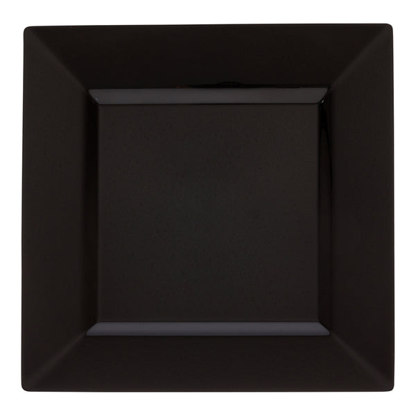 Enhance your event with our Bundle: Maxi Serve Square Black Plastic Modern Plates and Argento Silver Plastic Cutlery Sets, delivering a stylish and practical solution for your catering needs. This bundle includes 100 sleek black square plates with a contemporary design and raised edges to keep food secure, plus 100 sophisticated silver plastic cutlery sets, each tied with a ribbon. The elegant black finish of the plates adds a touch of class. Each cutlery set comes with a spoon, fork, and knife wrapped in a napkin, ensuring guests can dine mess-free. Made from premium plastic, both the plates and cutlery are disposable to allow for streamlined service and easy cleanup. The plates measure 9.5 inches in length and width, providing ample space for main courses and side dishes. Each order includes 100 plastic plates and 100 cutlery sets.