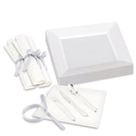Transform your party setup with our Bundle: Maxi Serve Square White Plastic Modern Plates with Moderna Silver Plastic Cutlery Sets, offering a chic and convenient solution for your events. This bundle includes elegant square white plastic plates and sleek silver plastic cutlery sets, providing a cohesive and modern tableware setup. The geometric design of the premium plastic plates brings a unique touch to your food presentations, while the raised edges ensure secure food containment. The elegant white finish imparts a sense of luxury, making these plates a perfect addition to any event. Complementing the plates are the silver cutlery sets, featuring a spoon, fork, and knife tied with an elegant silver ribbon, adding a contemporary flair to your table setting. The napkin wrapping avoids messes, ensuring your guests can enjoy their meals comfortably. Built from premium plastic, these cutlery sets are disposable, allowing for easy cleanup after use. Each stylish plate measures 9.5 inches in length and width. Each order includes 100 plastic plates and 100 cutlery sets.