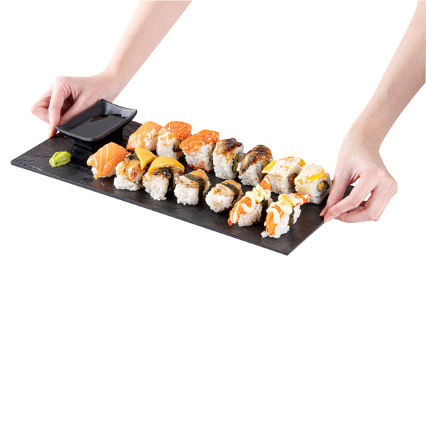 RECTANGLE BLACK PLASTIC LARGE PLATE - FAUX SLATE