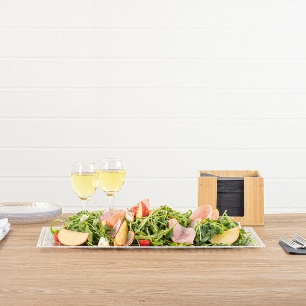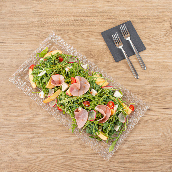 RECTANGLE CLEAR PLASTIC PLATE - WITH LACE RIM