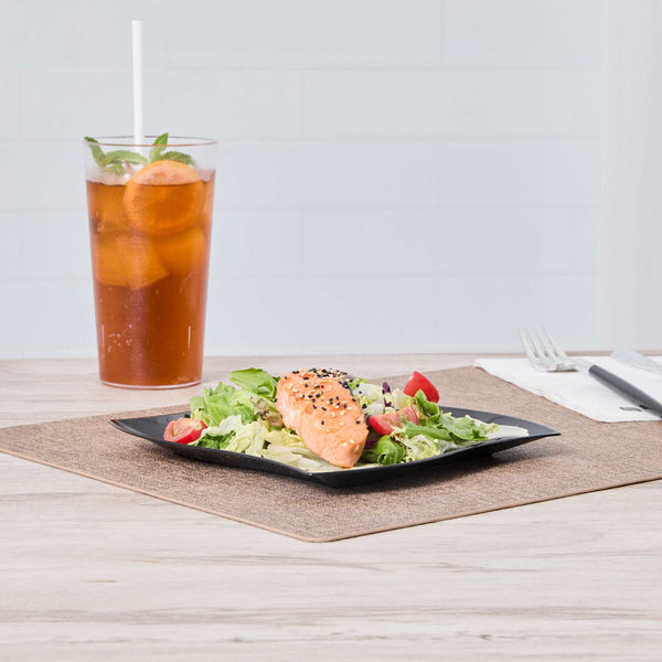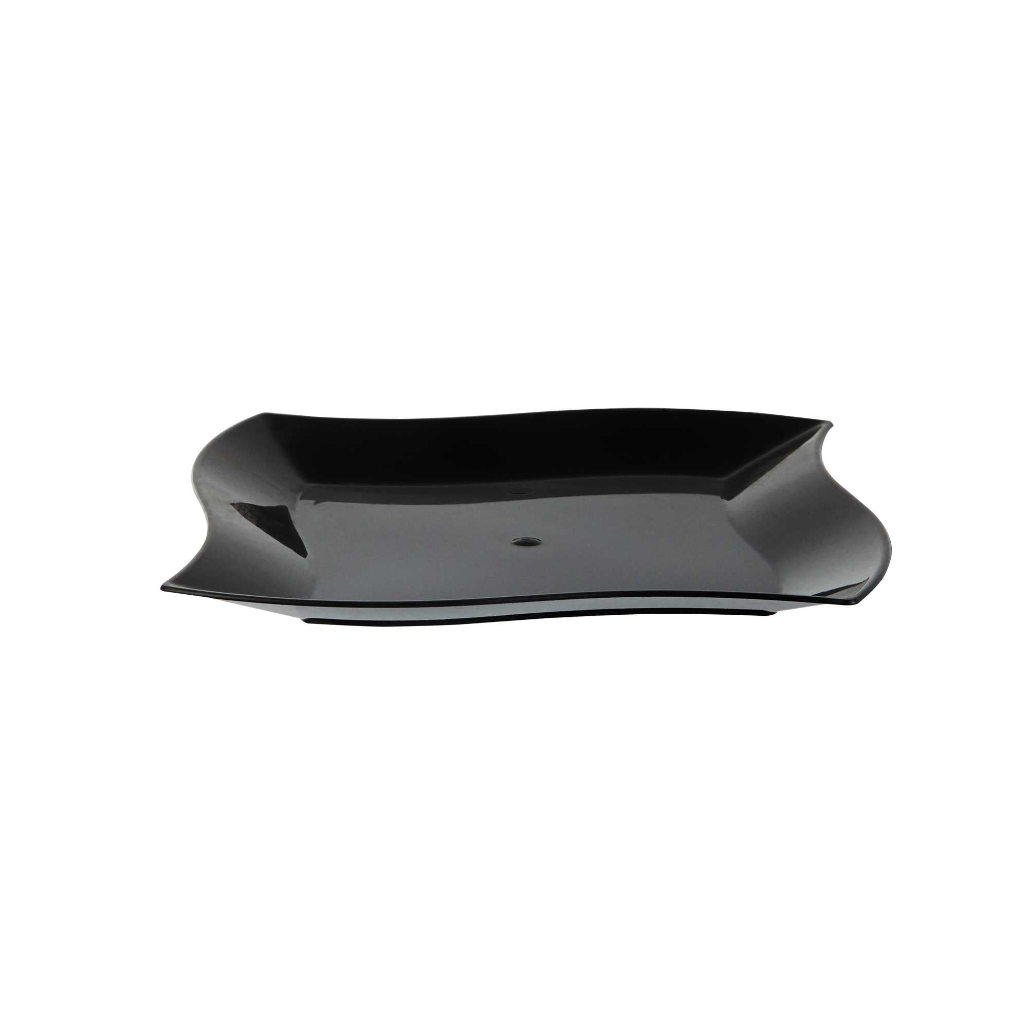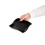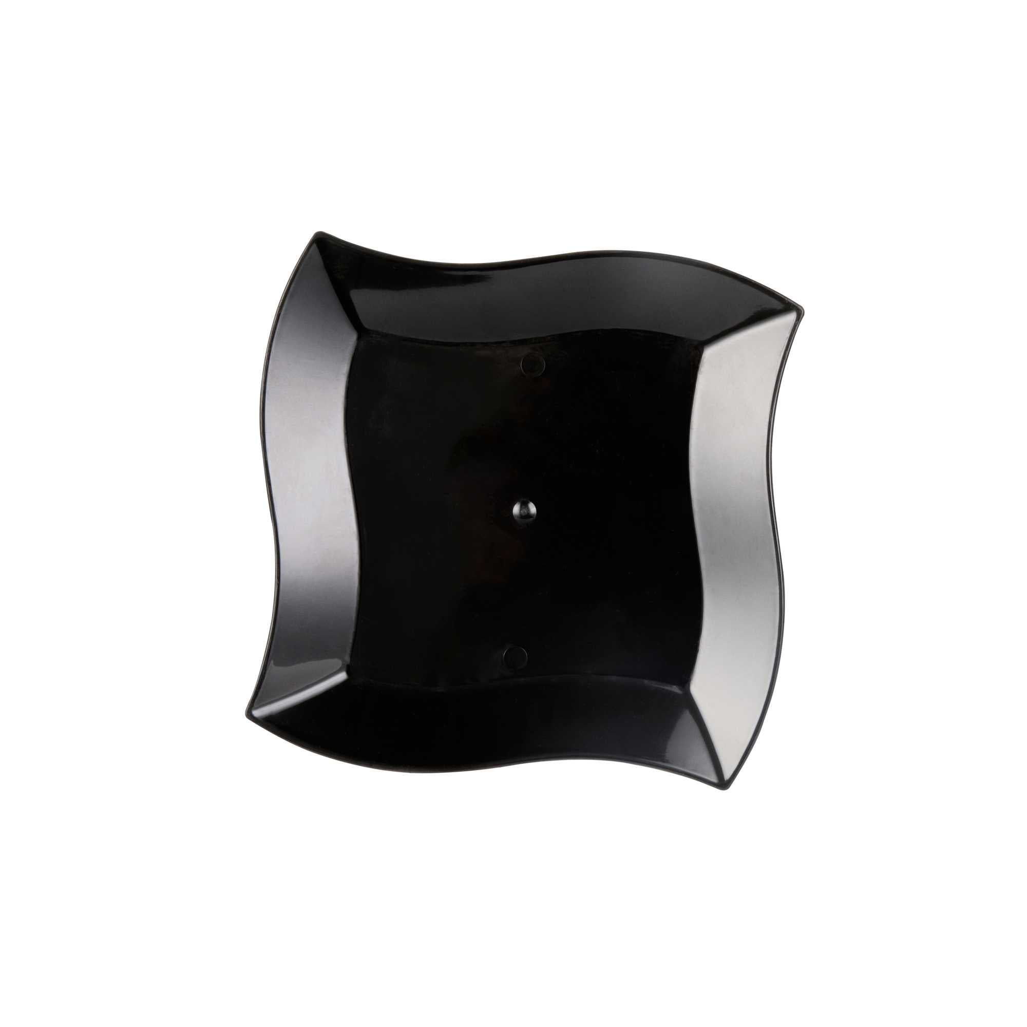 Upgrade your dining experience with our Maxi Serve Square Black Plastic Medium Aqua Plates. Made from premium plastic, these dinner plates provide reliable use without breaking. The asymmetrical design of these chic appetizer plates adds a distinctive touch to your food displays. Featuring raised edges along the sides, these disposable plastic plates securely accommodate your culinary offerings. Their convenient disposability of these black dinner plates streamlines the foodservice process, ensuring easy cleanup. The elegant black finish enhances the aesthetic appeal, giving a luxurious look to any event. Measuring 7 inches in length by 7 inches in width, these disposable food plates are ideal for all catering events or foodservice establishments. Sold in a 100 count box.