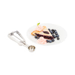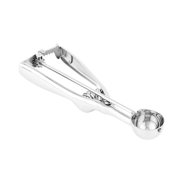 Deliver impeccably rounded dessert portions with our Met Lux 0.3-Ounce Silver Stainless Steel #100 Ice Cream Scoop. Made from high-quality stainless steel, this ice cream scoop is capable of handling a variety of desserts and enduring the demands of your busy commercial kitchen. This cookie dough scoop can hold up to 0.3 ounces for serving consistent portions of your desserts, reducing waste at your ice cream parlor, bakery, cafe, or other professional setting. The ambidextrous squeeze handle of this cookie scoop allows both left and right-handed staff to easily serve precise portions. Making cleaning a breeze, this stainless steel scoop is dishwasher-safe. Measuring 9.25 inches in length by 2.75 inches in width by 1.5 inches in height, this ice cream disher can hold up to 0.3 ounces. Sold in a 1 count box.