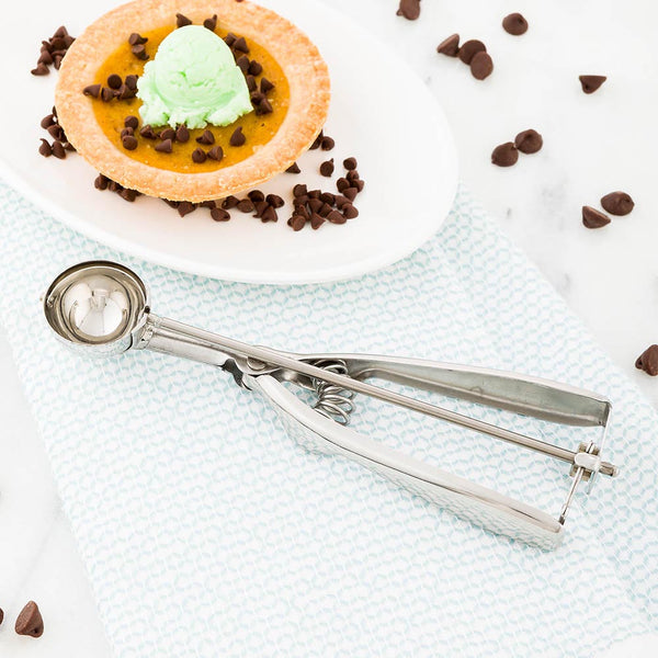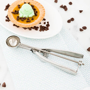 Sculpt perfect scoops for sumptuous desserts with our Met Lux 0.5-Ounce Silver Stainless Steel #70 Ice Cream Scoop. Manufactured from superior stainless steel, this ice cream scoop is built to work with all types of desserts and resist the workload of your high-traffic commercial kitchen. This cookie dough scoop can hold up to 0.5 ounces and methodically scrape away unwanted ice cream, minimizing waste in your service environment. The squeeze handle of this cookie scoop is designed for ambidextrous use, enabling left and right-handed staff to serve even portions conveniently. This stainless steel scoop is dishwasher-safe, facilitating effortless post-service cleaning. Measuring 8 inches in length by 2.5 inches in width by 1.5 inches in height, this ice cream disher can hold up to 0.5 ounces. Sold in a 1 count box.