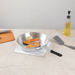 Elevate your cooking experience with our Bundle: Met Lux 1 Aluminum 12" Fry Pan with 1 Black Silicone Pan Handle Sleeve. This frying pan is made from robust 3.5 mm thick aluminum, ensuring long-lasting durability and superior heat distribution for perfectly cooked meals every time. Impressively lightweight, this aluminum fry pan allows for easy maneuvering, making flipping or stirring your dishes a breeze. The satin finish on this cooking pan excels at searing and browning, giving your dishes a professional touch. Equipped with a triple-riveted handle, this skillet pan provides a comfortable grip for safe handling. The convenient hanging hole of this aluminum pan makes it easy to store and saves valuable kitchen space. For optimal care and maintenance, hand washing this aluminum skillets is recommended. With a heat resistance of up to 450F, this removable handle sleeve ensures the safe handling of pan, even when they're blazing hot. Featuring molded indentations, this silicone sleeve offers a firm and secure grip, giving you full control while frying or sauteing. The removable design of this pan handle sleeve provides added convenience by allowing easy attachment and removal. This aluminum frying pan measures 22.24 inches in length by 11.81 inches in width by 3.94 inches in height. Each order includes 1 pan and 1 sleeve.