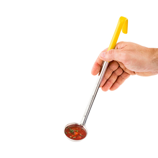 1 OZ STAINLESS STEEL SERVING LADLE - WITH YELLOW HANDLE