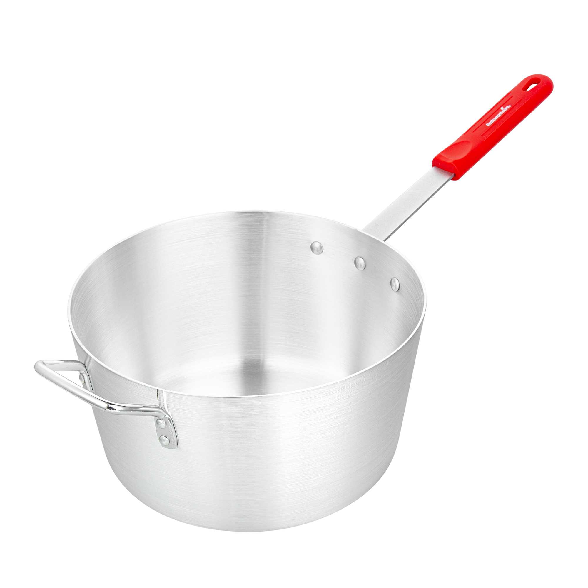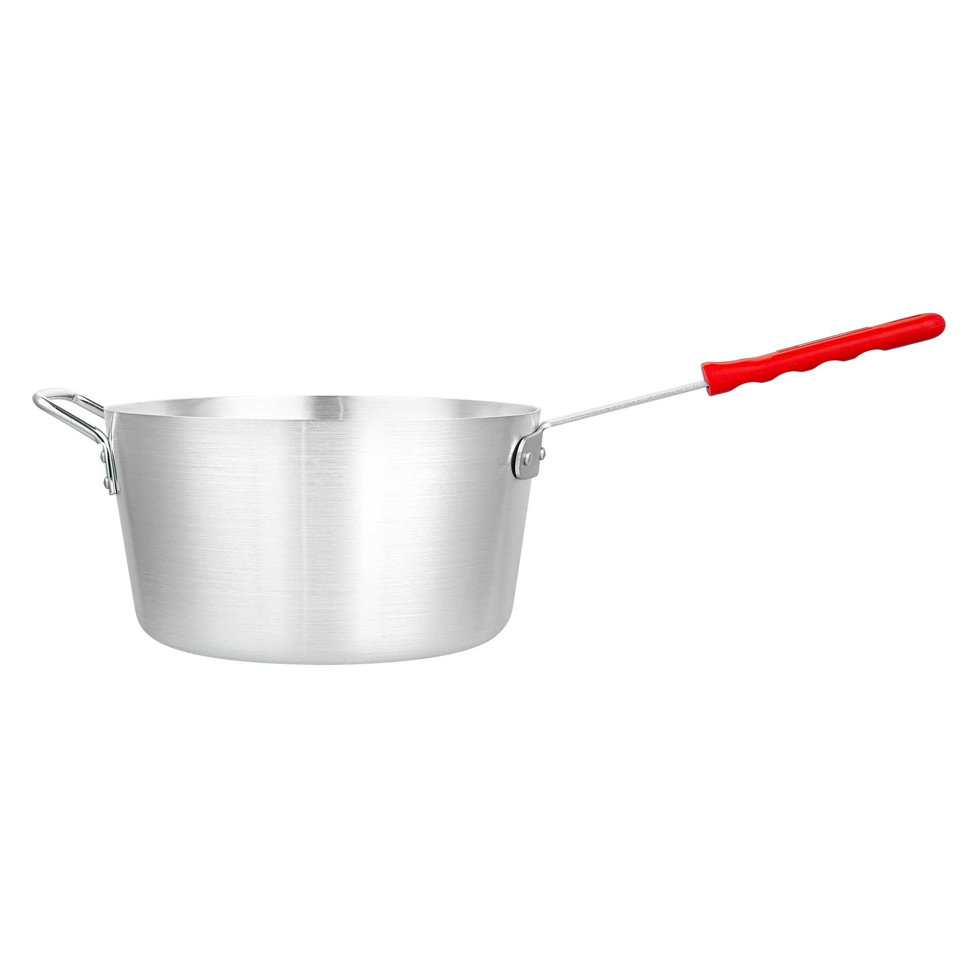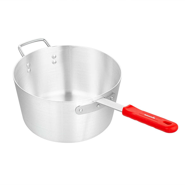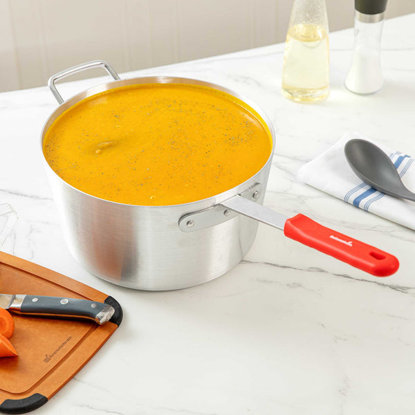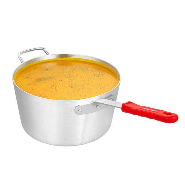 10 QT TAPERED ALUMINUM SAUCE PAN - WITH RED SILICONE HANDLE SLEEVE