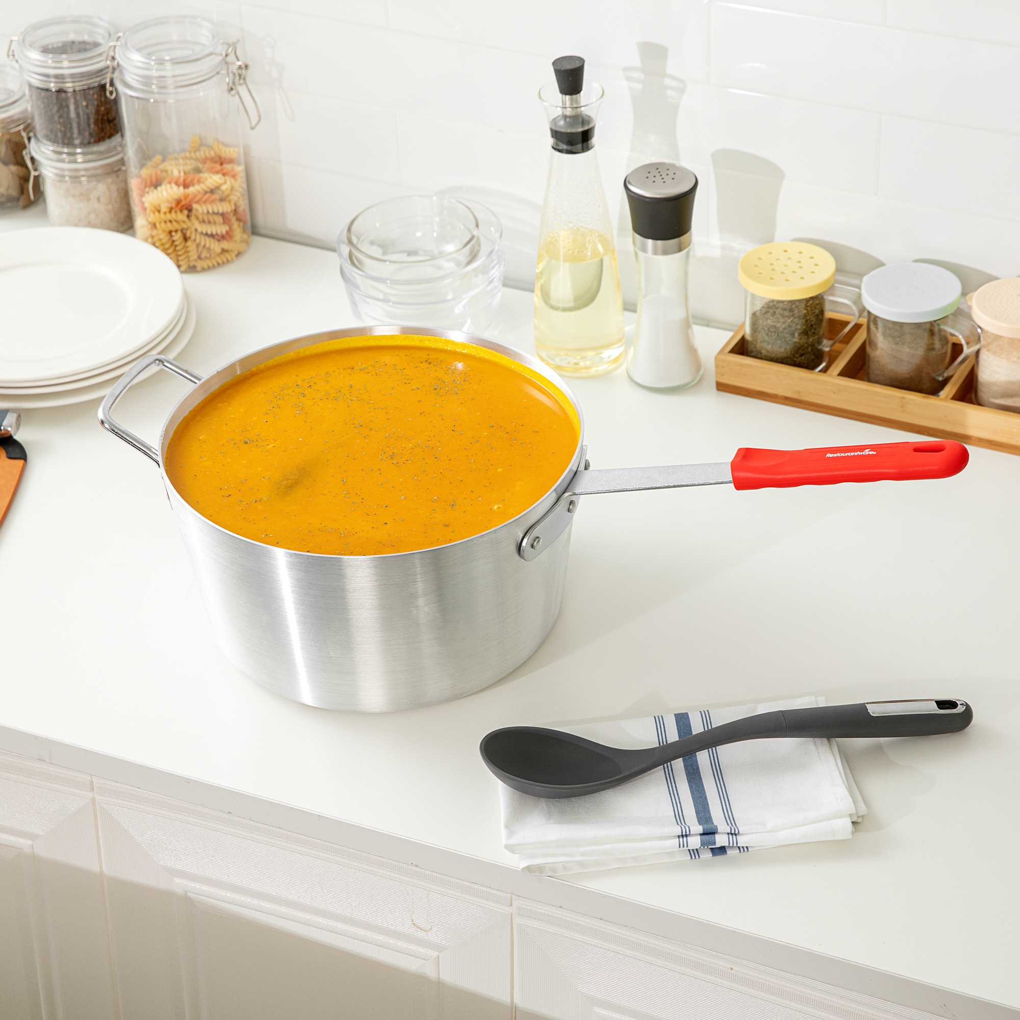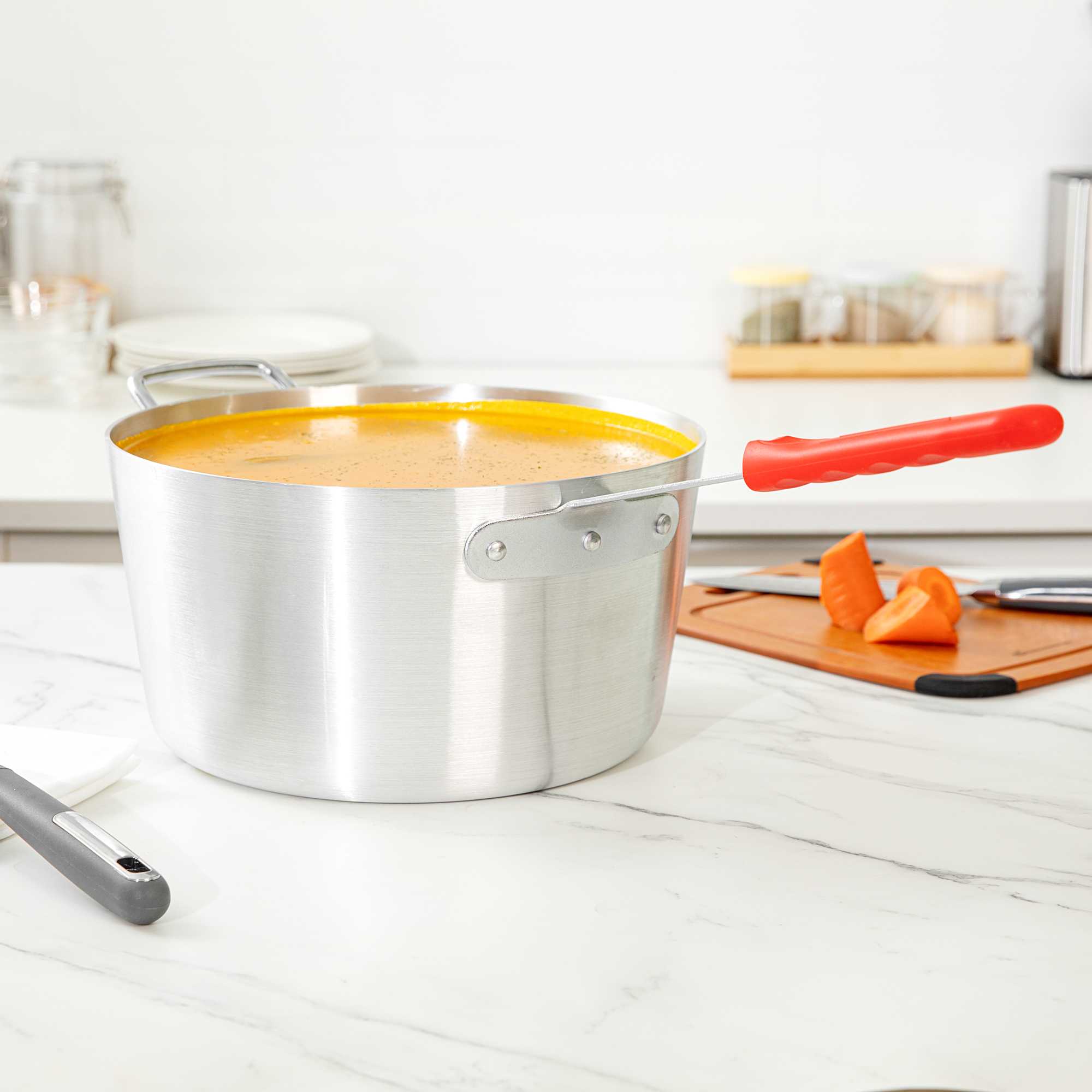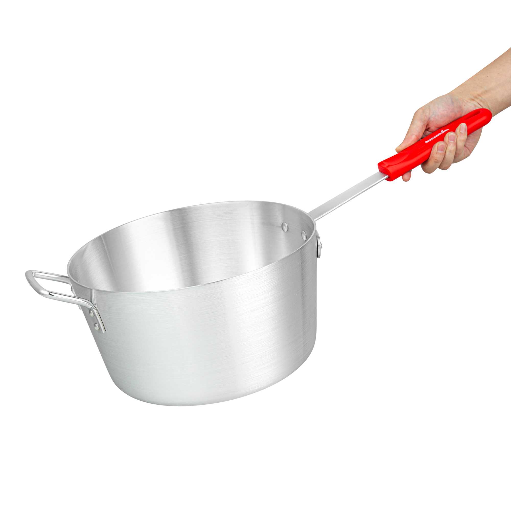 10 QT TAPERED ALUMINUM SAUCE PAN - WITH RED SILICONE HANDLE SLEEVE
