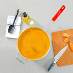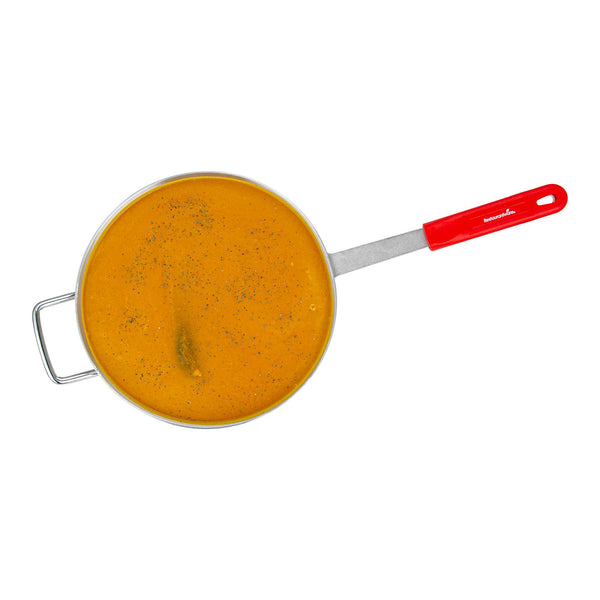 - Red silicone handle ensures a safe, cool grip