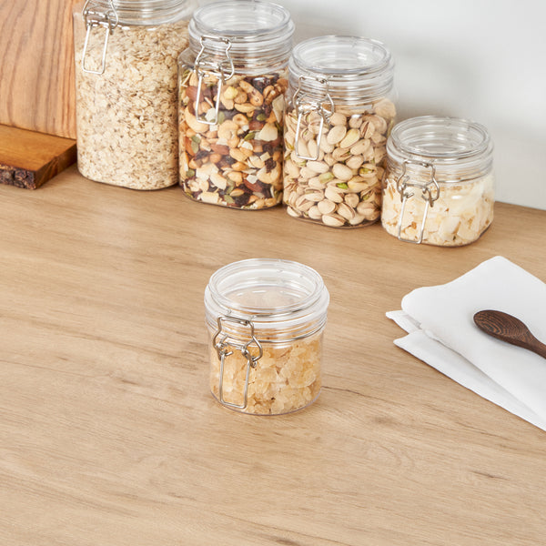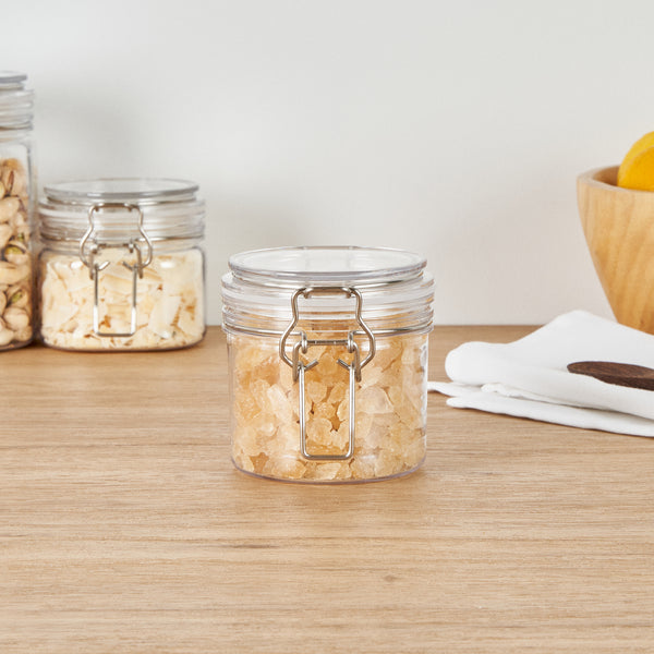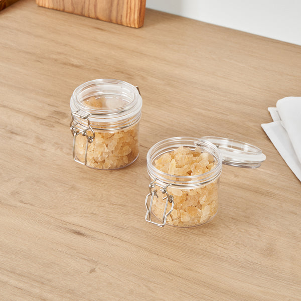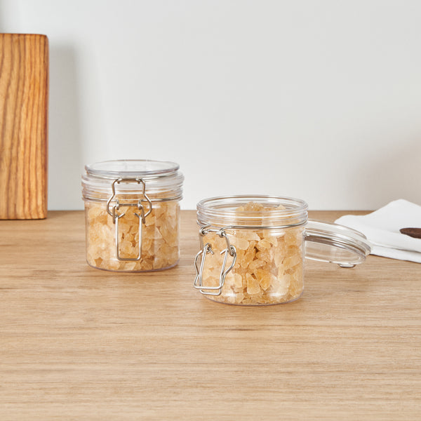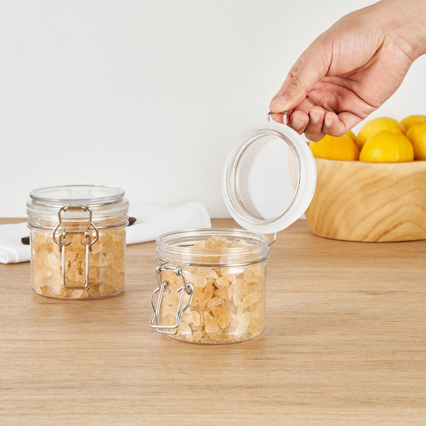 Ensure maximum freshness with airtight plastic jars. Met Lux Clear Wide Mouth Jars are constructed from plastic, offering safety and durability for long-term use, and their clear design allows for quick inventory checks. The airtight design, featuring a leak-proof rubber gasket and hinged lid, preserves the aroma and flavor of your stored ingredients, making them ideal plastic food storage containers. With a convenient wide mouth design, these jars simplify the process of filling and accessing ingredients, ensuring efficiency for busy kitchen environments. Measuring 3.44 inches in length by 3.44 inches in width and 3.54 inches in height, these jars are perfect for storing an array of items from flour and sugar to coffee beans and spices, with a capacity of 11.9 ounces. Enhance your kitchen’s organization effortlessly with these versatile clear wide mouth jars. Each order includes 2 Met Lux Clear Wide Mouth Jars.