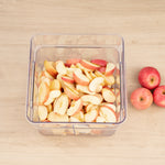 Conveniently store ingredients or prepared foods using our Met Lux 12-quart Square Clear Plastic Food Storage Container. Featuring blue volume markers in liters and quarts, this food container box allows you to measure, portion, and store ingredients. Built to resist stains and odors, this durable food container is made to maintain its high-quality design and withstand frequent use. This plastic kitchen container has a clear finish which provides you with full visibility to quickly identify ingredients in your freezer or refrigerator. This food storage container features sturdy handles to ensure you have a secure and comfortable grip when transporting ingredients from your prep area to your storage room. Cover this container with our compatible food storage lids (SKU: RWT0843-1) to keep food safe and prevent spilling during transport. Ideal for storing all types of ingredients, this freezer-safe food container can withstand temperatures from -40F to 210F. This kitchen storage container is stackable for quick and simple storage in your commercial kitchen. Containing up to 12 quarts, this dishwasher-safe food box measures 11 inches wide by 8 inches tall. Sold in a 1 count box. Lid is available and sold separately.