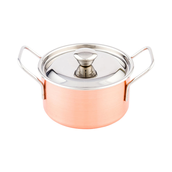 16 OZ COPPER STAINLESS STEEL LARGE INDIVIDUAL CASSEROLE POT - WITH LID