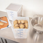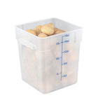 Optimize your kitchen operations with reliable food storage solutions. The Met Lux Portion Control Food Storage Container combines a spill-resistant design with space-efficient dimensions of 10.88 inches by 10.88 inches, ideal for maximizing your storage space. Constructed from durable plastic, this plastic storage container withstands the rigors of high-demand kitchens while providing a clear view of contents with its translucent color. Blue graduations on the container enable precise portion control and help reduce waste, offering practical advantages in busy foodservice settings. For effortless transport and minimized spillage, stable handles ensure that your staff can maneuver bustling kitchens with ease. The container is dishwasher safe, ensuring easy cleaning after hectic service hours and saving valuable time in your cleanup routine. Invest in this food storage container to streamline operations. Each order includes 1 Met Lux Portion Control Food Storage Container.