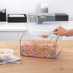 Available in various shapes and sizes to suit your storage needs, these transparent storage containers allow you to explore versatile options. Effortlessly organize and display your cereal collection