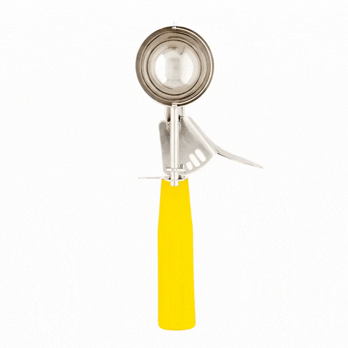 2 OZ STAINLESS STEEL #20 PORTION SCOOP - WITH YELLOW HANDLE