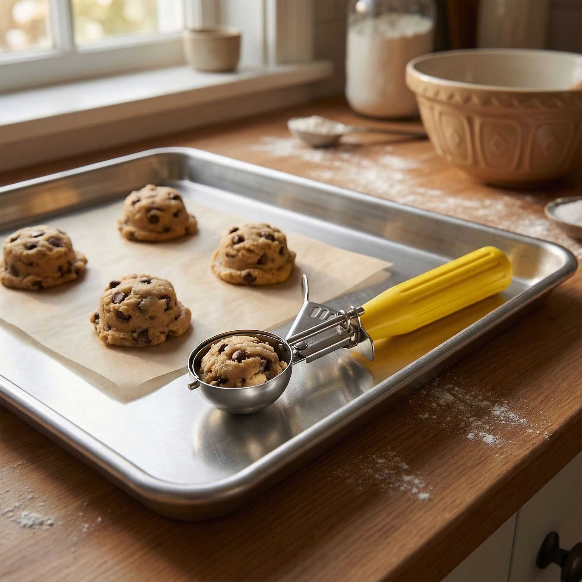 Ideal for preparing evenly baked desserts and accurately portioned meals! These scoops with trigger allow you to easily scoop cookie dough, cupcake batter, meatballs, mashed potatoes, and more in seconds.