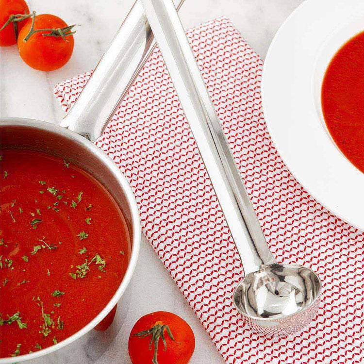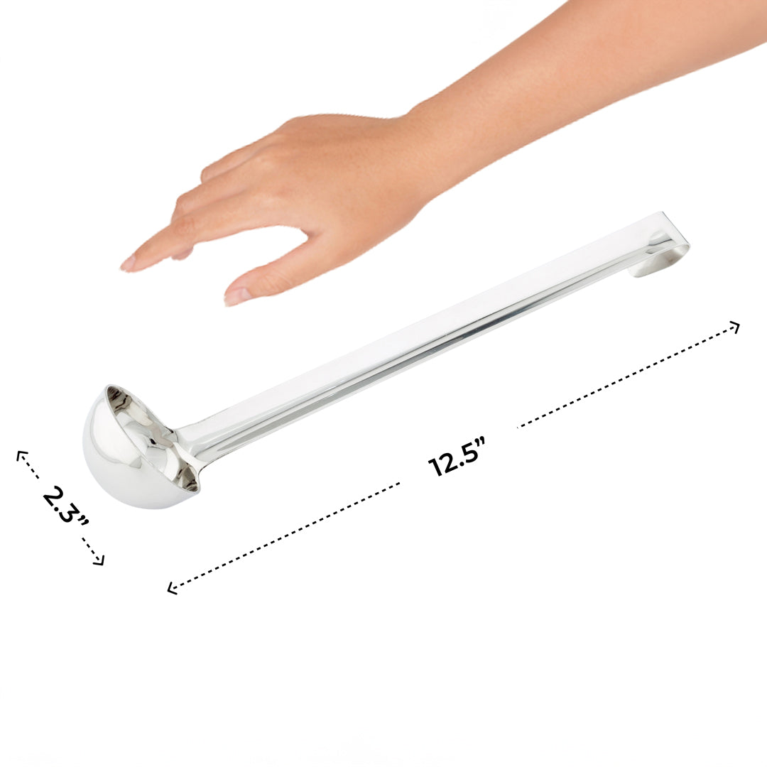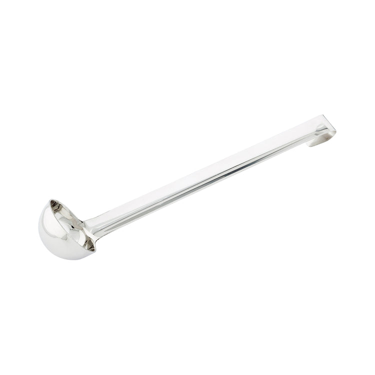 Pour sauces on your meals with our Met Lux 2-Ounce Stainless Steel Heavy-Duty Serving Ladle. This serving spoon is crafted from stainless steel from robust durability to withstand commercial use without rusting or corroding. Holding up to 2 ounces, this stainless steel spoon is perfect for serving consistent portions of sauces. Equipped with a long ergonomic handle, this soup spoon provides a comfortable hold while serving. This sauce spoon is dishwasher-safe to simplify your cleanup process. Measuring 12.5 inches long by 2.25 inches wide by 1 inch tall, this serving ladle has a capacity of 2 ounces. Sold in a 1 count box.