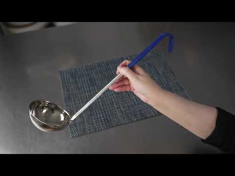 Optimize portion stability and refine recipe outcomes with our Met Lux 2-ounce Stainless Steel Serving Ladle. Fabricated from robust stainless steel, this serving ladle is built to withstand the pressures of your bustling commercial kitchen. This serving spoon features a color-coded handle in a bold red hue and embossed capacities, enabling hassle-free identification and consistent servings. The ergonomically designed handle of this soup spoon ensures easy and comfortable handling for streamlined operations. With a 2-ounce capacity, this stainless steel spoon is ideal for accurately apportioning vegetables, salads, soups, and more. This sauce spoon is dishwasher-safe, providing for simple post-use cleanup. Measuring 11.75 inches long, this stainless steel ladle can contain up to 2 ounces. Sold in a 1 count box.