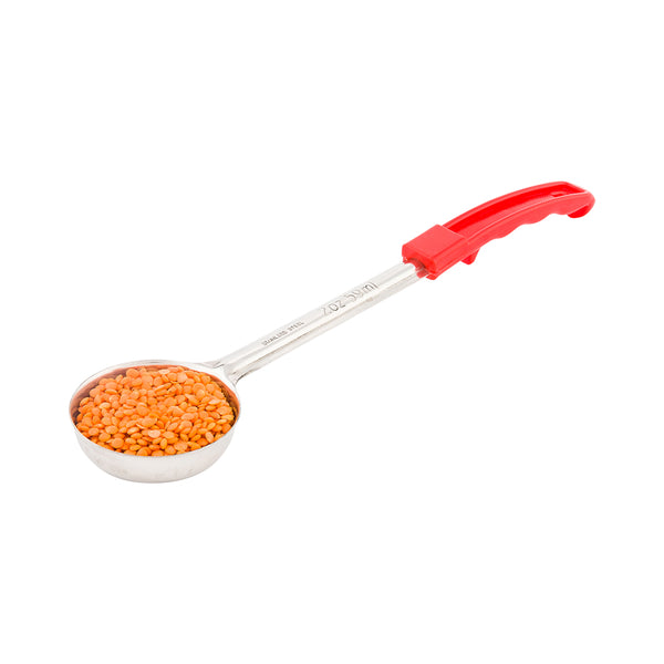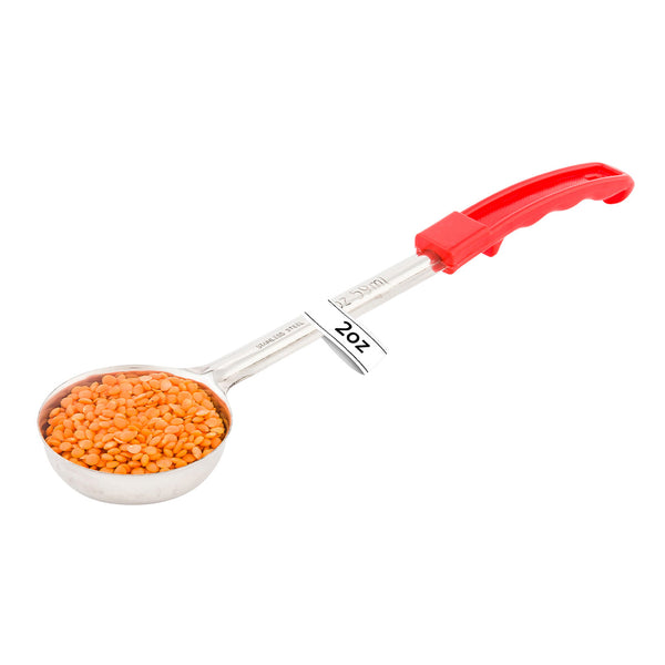 Prepare the perfect portion every time with our Met Lux 2-Ounce Stainless Steel Spoodle. This cooking spoon is crafted from premium stainless steel and ensures reliable and long-term commercial usage. With a total capacity of 2 ounces, this serving spoon is excellent for scooping consistent servings of sauces, dressings, or batters. This stainless steel spoons is equipped with a color-coded handle and clearly engraved capacity markings that make it simple for your staff to identify and serve proper portions quickly. The ergonomic plastic handle of this soup spoon provides a secure and comfortable grip. This serving ladle is dishwasher-safe for an easy cleaning experience. Measuring 13.25 inches in length by 2.75 inches in width by 1.5 inches in height, this serving spoodle can hold up to 2 ounces. Sold in a 1 count box.