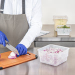 Optimize your kitchen's efficiency with reliable storage solutions. The Met Lux Graduated Food Storage Container offers a robust design with ergonomic handles, making it an indispensable food storage container for busy commercial kitchens. Its red graduations ensure precise portion control, significantly reducing food waste and maximizing ingredient utilization. With its stackable design, this food container optimizes valuable kitchen space. Crafted from durable polypropylene, this storage container withstands the rigors of daily use, while its translucent finish provides easy visibility of contents. The dishwasher-safe construction supports efficient kitchen operations by simplifying cleanup. Ideal for both hot and cold foods, this versatile container measures 7 inches in length, 7 inches in width, and 3.88 inches in height, perfectly accommodating varied storage needs. Each order includes 10 Met Lux Graduated Food Storage Containers.