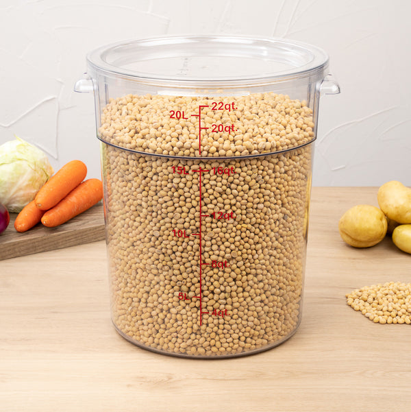 22 QT CLEAR PLASTIC FOOD STORAGE CONTAINER - WITH RED VOLUME MARKERS