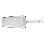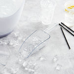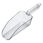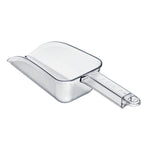 Use our Met Lux 24-ounce Ice Scoop to scoop ice with ease. With a beveled front edge, this utility scoop allows you to cleanly collect ingredients. The flat bottom design of this ice scoop provides a reliable way to reach cooking supplies left at the bottom of bins or containers. Made from lightweight PC plastic, this ingredient scoop is ideal for continuous serving without the worry of hand or wrist strains. The durable construction of this ice machine scoop allows for constant operation and is designed to avoid scratches, chips, or breaking. To conveniently store separately from ingredients in bins, this ice cube scoop features a hanging slot on the handle. For a facilitated cleanup, this clear plastic scoop withstands dishwasher use. This clear plastic scoop measures 13 inches long by 4 inches wide by 3 inches tall and can hold up to 24 ounces. Sold in a 1 count box.