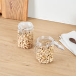 29 OZ SQUARE CLEAR PLASTIC STORAGE JAR - WITH HINGED LID