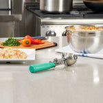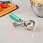 3.25 OZ STAINLESS STEEL #12 PORTION SCOOP - WITH GREEN HANDLE