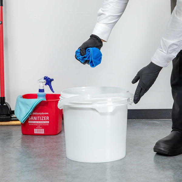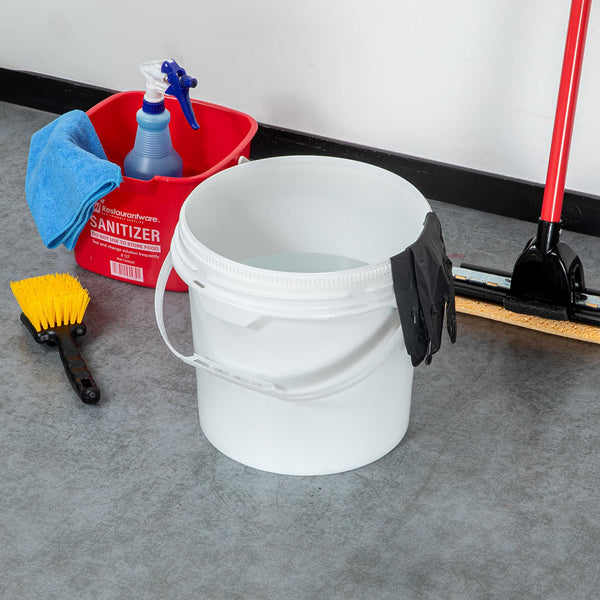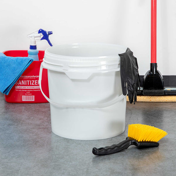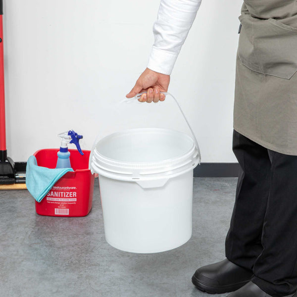 Enhance your storage solutions with our Met Lux 3.5-gallon Round White Plastic Screw Top Pail. This UN rated screw top pail ensures compliance with stringent standards, offering reliable protection and peace of mind during storage and transport. Crafted from FDA-compliant plastic, this bucket ensures both durability and safety, ideal for foodservice and beyond. Featuring a tamper-evident seal, this screw top bucket can be paired with its compatible lid (RWT2042W) for added security, ensuring contents remain intact and protected from unauthorized access. This bucket is equipped with an airtight gasket, delivering moisture resistance to keep contents dry and safeguarded from environmental elements. With an attached handle, this pail allows for easy carrying and convenient transport, perfect for various tasks and settings. Measuring 11.3 inches in diameter by 11.5 inches in height, this bucket boasts a generous capacity of 3.5 gallons, accommodating a wide range of storage needs. Sold in a 1 count box. Lid is available and sold separately.