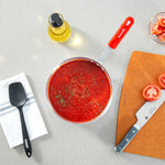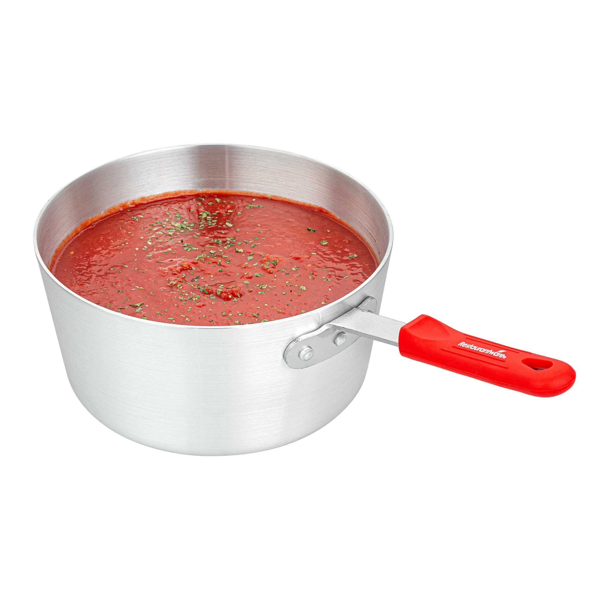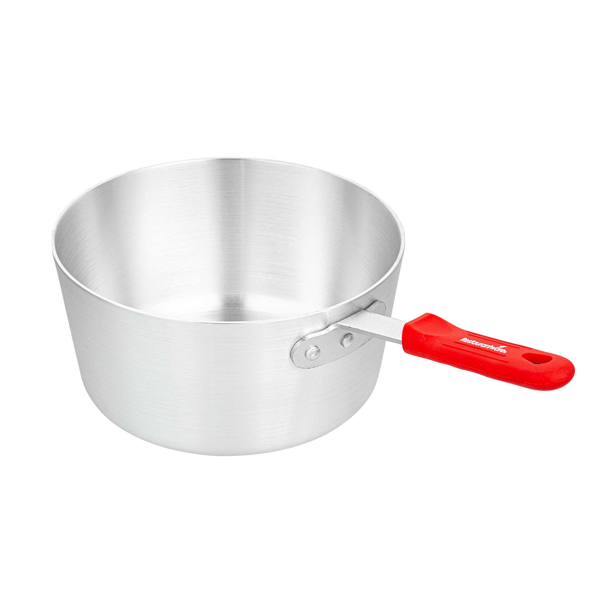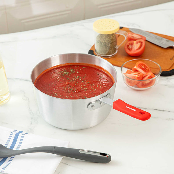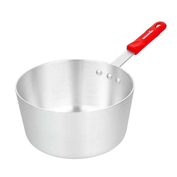 3.75 QT TAPERED ALUMINUM SAUCE PAN - WITH RED SILICONE HANDLE SLEEVE