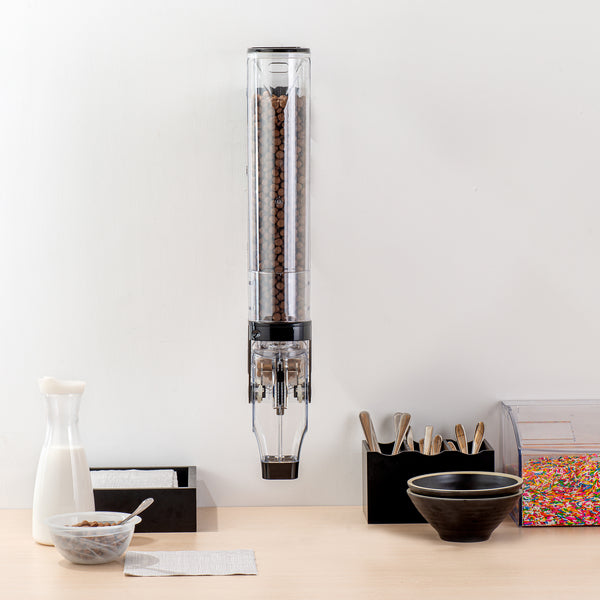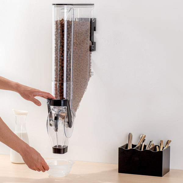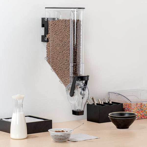 3 GAL BLACK PLASTIC WALL MOUNT CEREAL DISPENSER