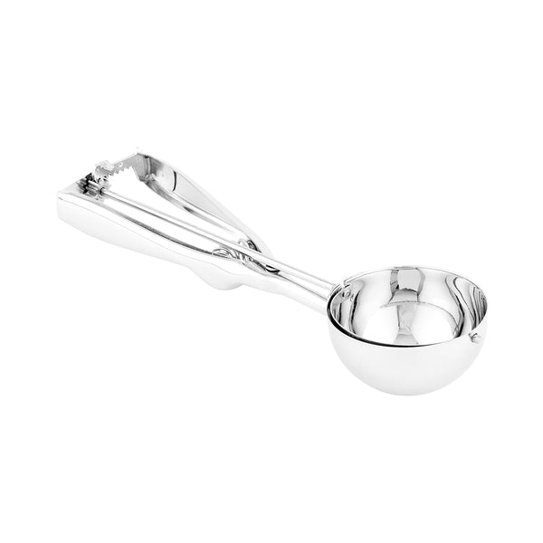 Create impeccable scoops of ice cream with our Met Lux 3-Ounce Silver Stainless Steel #10 Ice Cream Scoop. Made from stainless steel, this resilient ice cream scoop is designed to manage all kinds of desserts, enduring the demands of your busy commercial kitchen. With a capacity of 4, this stainless steel scoop delivers consistent portions of ice cream. This cookie dough scoop is equipped with an interior blade that clears away excess ice cream, minimizing waste at your ice cream parlor, bakery, cafe, or other foodservice locations. The squeeze handle of this ice cream disher is ambidextrous, allowing left and right-handed staff to conveniently serve uniform portions. This cookie scoop is dishwasher-safe for easy post-service cleaning. Measuring 8 inches long by 2.5 inches wide, this gelato scoop can hold up to 3 ounces. Sold in a 1 count box.