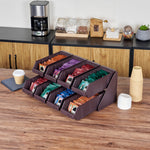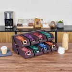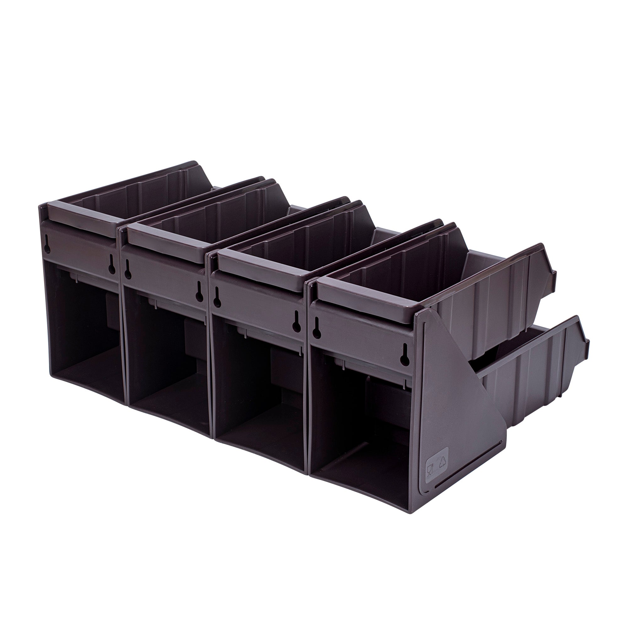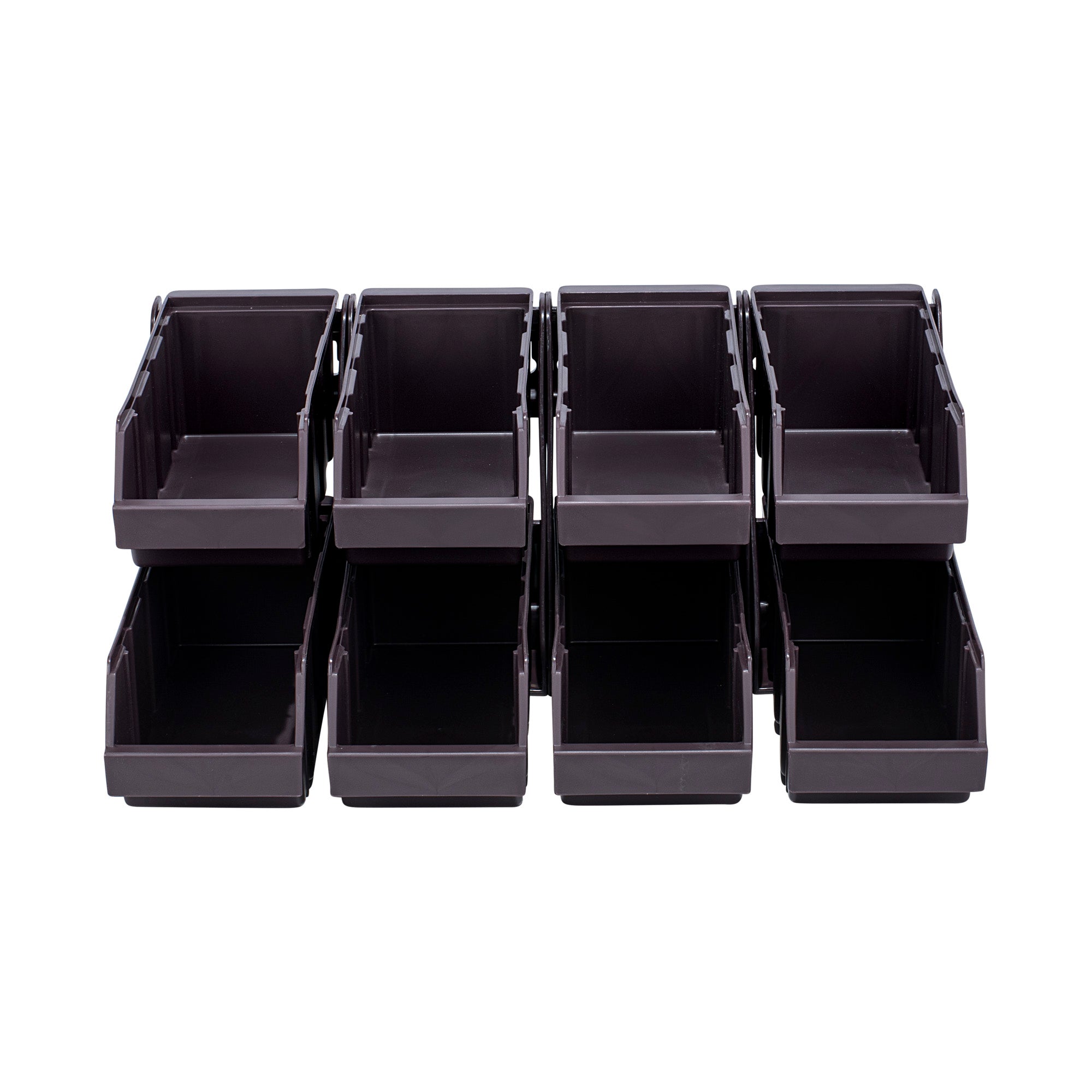 4 BROWN 2-TIER STANDS AND 8 CONDIMENT BINS AND 12 CONNECTOR CLIPS
