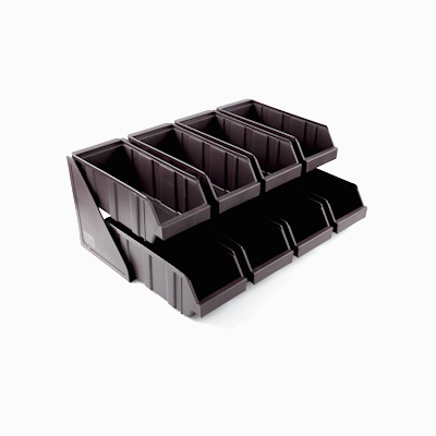 - Condiment bins display options for topping stations or take-out preparation areas